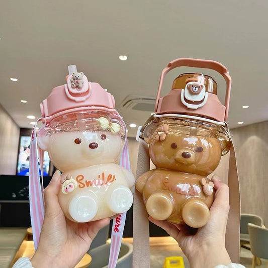 Cute Bear Water Bottle With Mobile Phone Bracket Lid