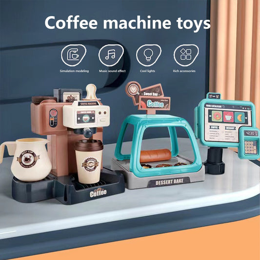Coffee Machine Kitchen Toys Cashier Supermarket Register Toy Set With Light and Sounds