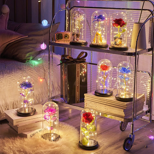 ETERNAL ROSE WITH LED LIGHTS IN GLASS DOME