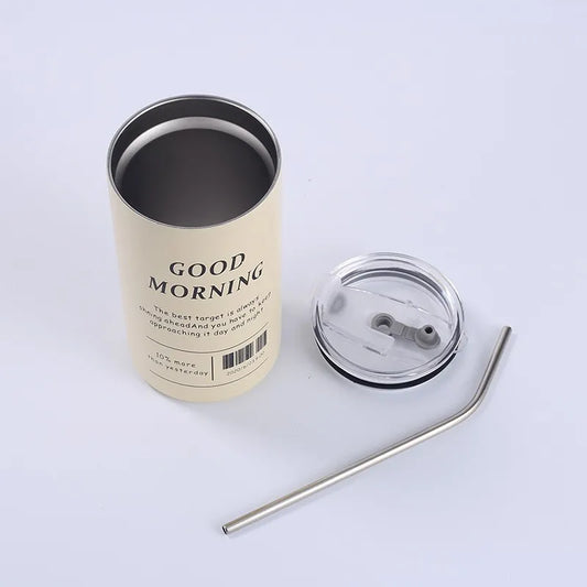 600ml Stainless Steel Iced Coffee Cup with Straw
