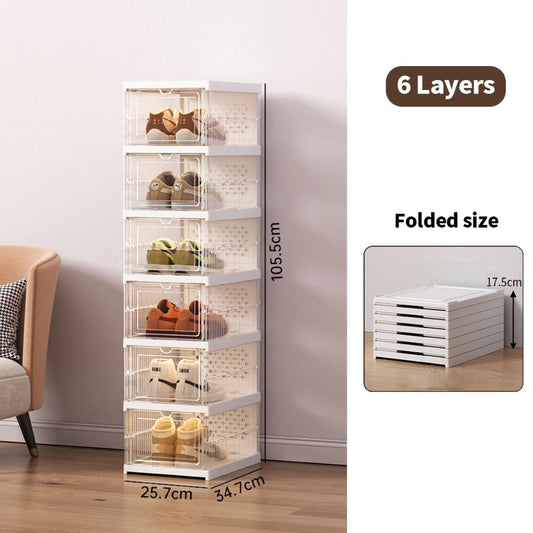 6 Layers Foldable Stackable Shoe Box Rack