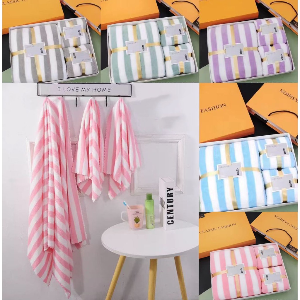 3 in 1 Bath Towel Microfiber Coral Velvet Water Absorption Towels With Gift Box