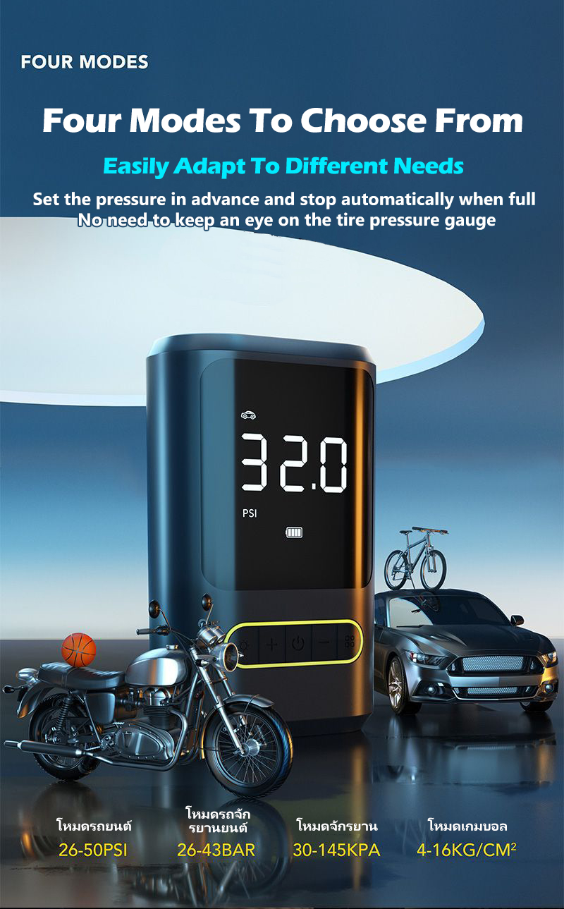 • Portable Tire Inflator – Madaling mag-inflate ng tires for cars, motorcycles, bikes, at kahit balls.