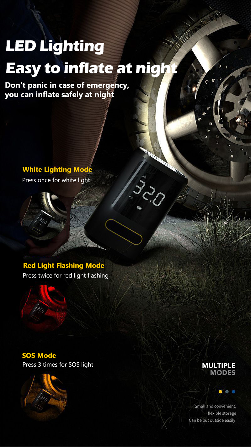 🚗 Inflate, charge, and light up anytime! A must-have portable tool for every driver. 🔋✨