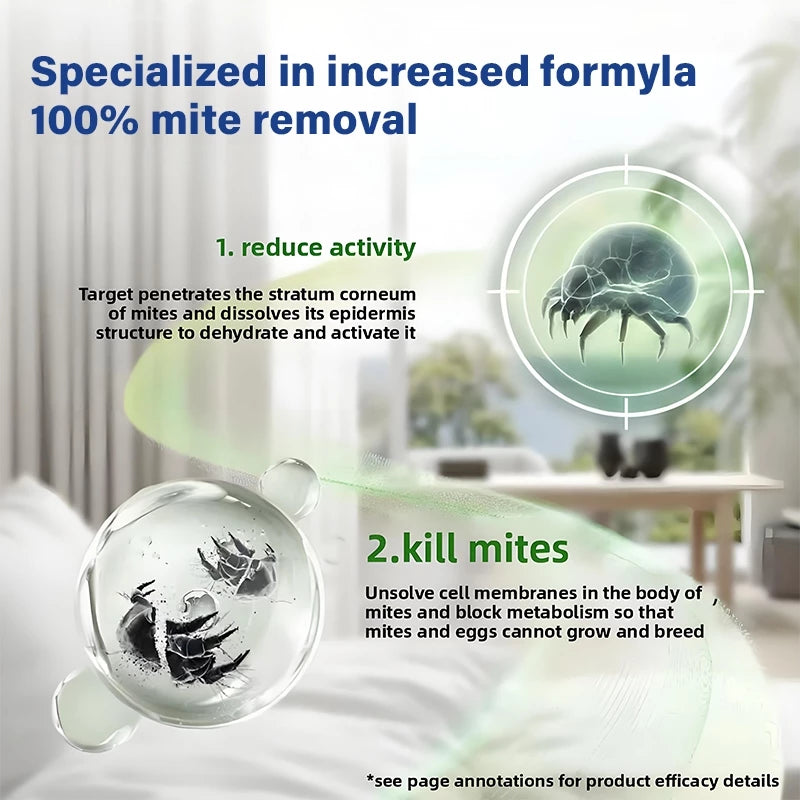 Proven to kill bed bugs and dust mitesdust mite killer spray contains plant herbs and is a safe and environmental protection formula. It does not cause skin allergy and is harmless to contact. It can natural security quickly remove mites and prevent the regeneration of mites.