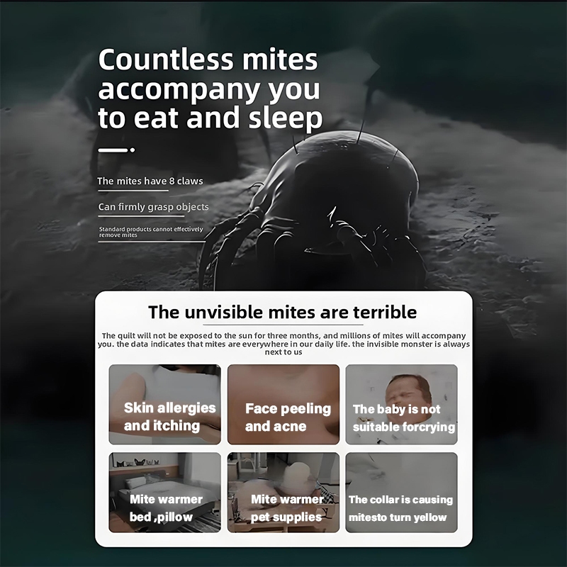 2:Spray on areas with mites, such as bed, clothes, sofa, bedding, pets, etc., to remove mites and smell quickly. And it has the effect of preventing the regeneration of mites for a long time.