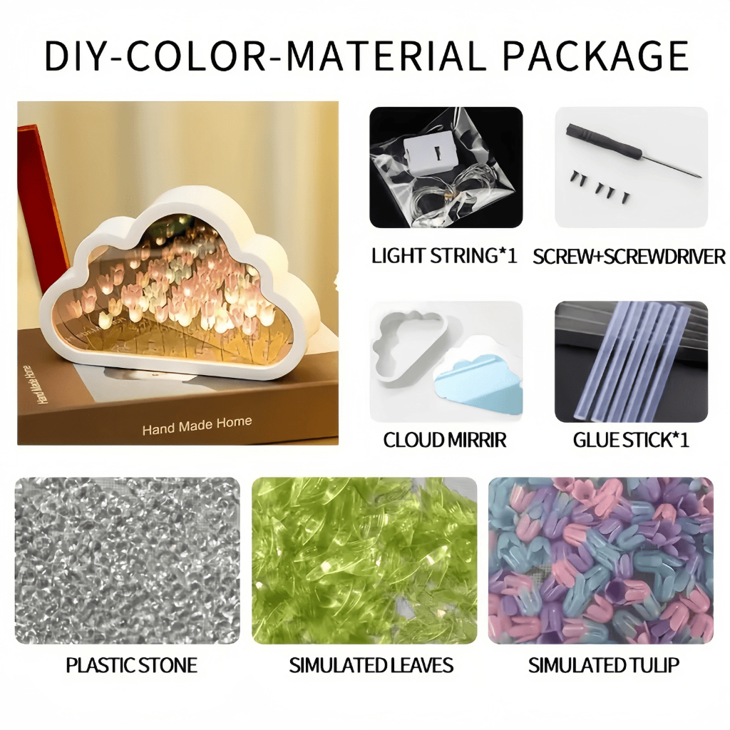 📦 Comes complete with tulip stems, LED light, mirror, and cloud cover