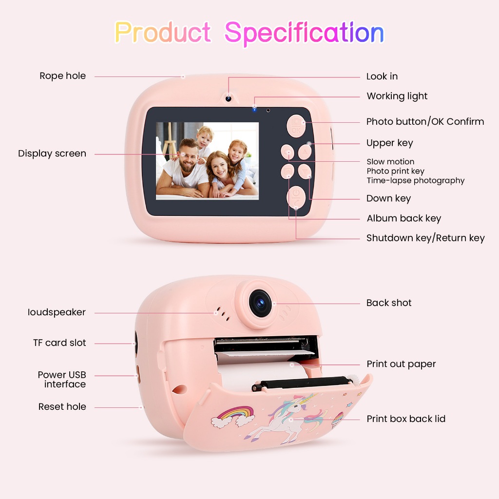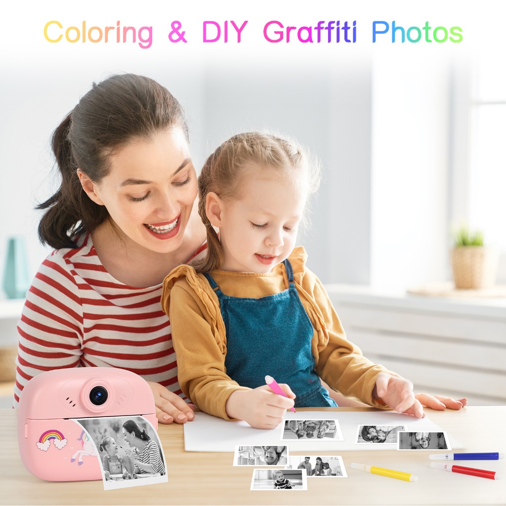 DIY Instant Digital Camera makes photography magical for kids! This cute, colorful camera lets children capture and instantly print black-and-white photos. With a large display and easy controls, it encourages creativity and fun. Available in Blue, Pink, Yellow, and Purple – the perfect first camera for little photographers to record memories and share instantly.