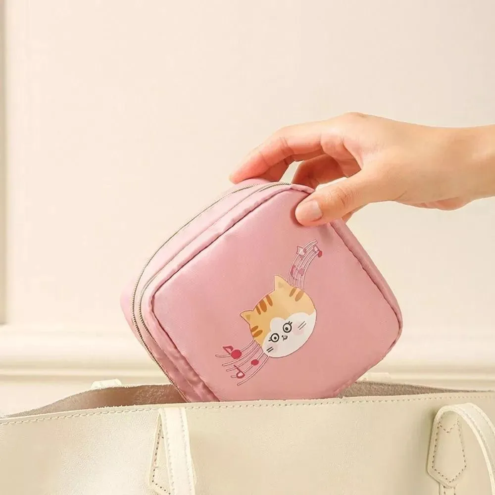 Organizer bag can not only store sanitary napkins and tampons but also carry little items for girls and women such as lip balms, cosmetics, mini mirrors, jewelry, keys, cash, credit cards, etc.