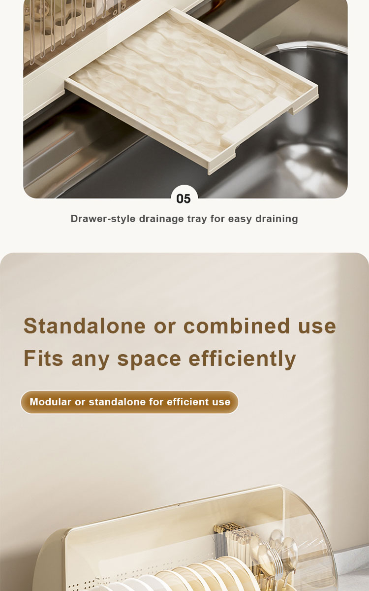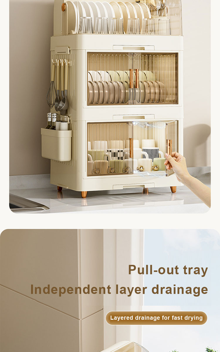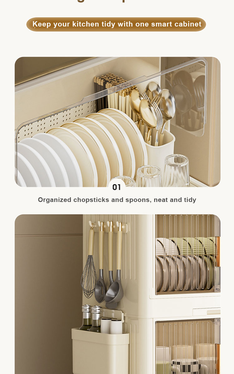 β All-in-One Organizer - Dedicated compartments for plates, bowls, cups, and utensils