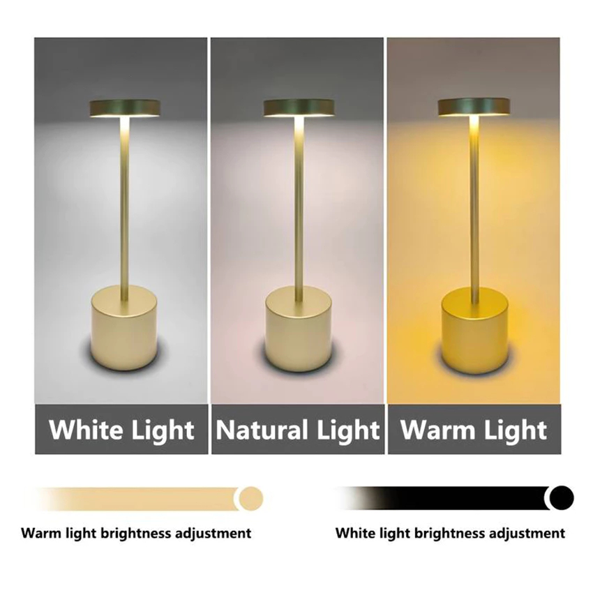 - USB Rechargeable: Say goodbye to tangled cords! Our LED Metal Table Lamp comes with a built-in rechargeable battery, offering up to 12 hours of continuous use on a single charge. Perfect for those who love convenience and efficiency.