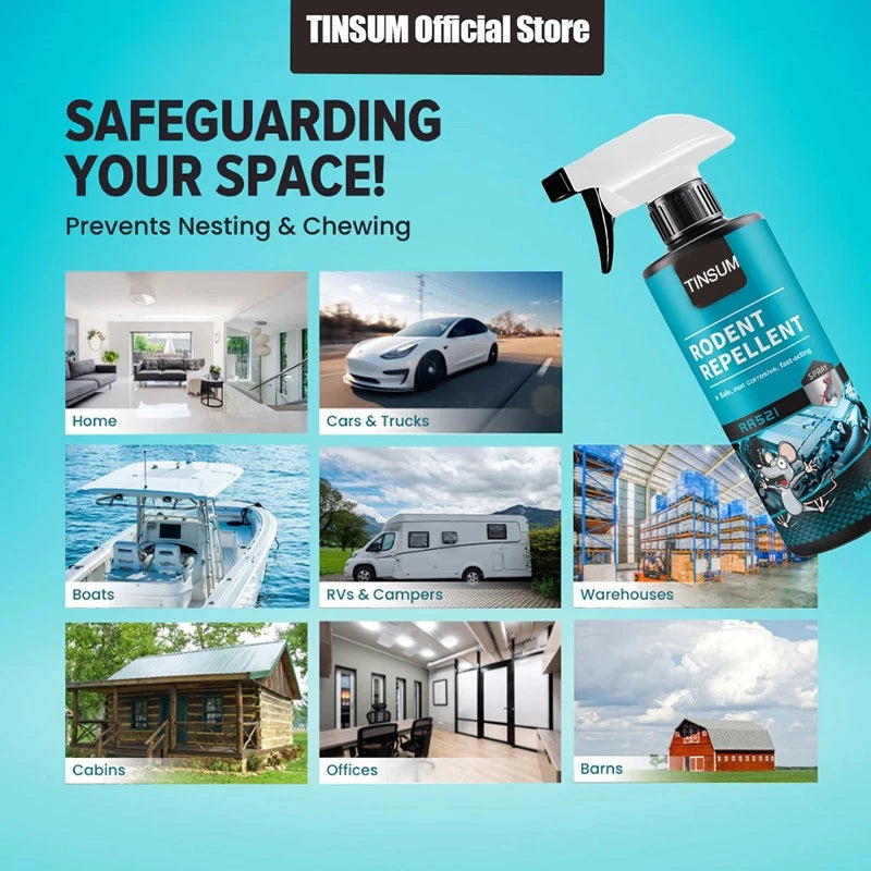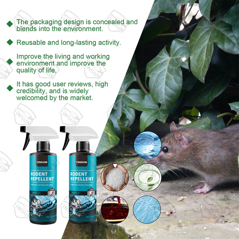 -This powerful repellent works by overwhelming a rodent's sense of smell. When sprayed around your home and property, mice and rats will not want to cross the barrier created by this repellent. The strong scent of the formula prevents these rodents from chewing through structures to enter your home.