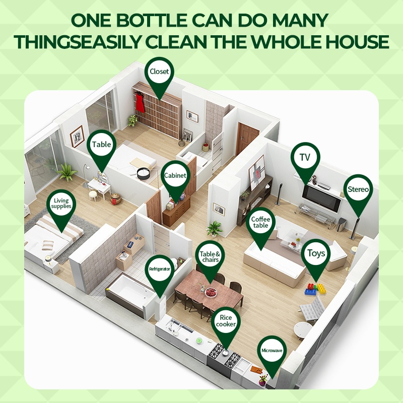 4.When cleaning hard surfaces such as refrigerators, ovens, microwaves, dining tables, air fryers, and other household items, spray evenly and wipe away stains with a cloth.